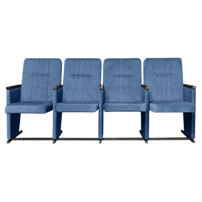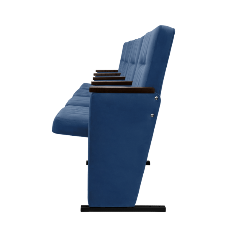 Секция отлично подойдёт для участников конференций, зрителей концертов и кинофильмов. На подлокотники установлены деревянные накладки. Металлическая опора кресла покрыта порошковой краской. Сиденья откидные.