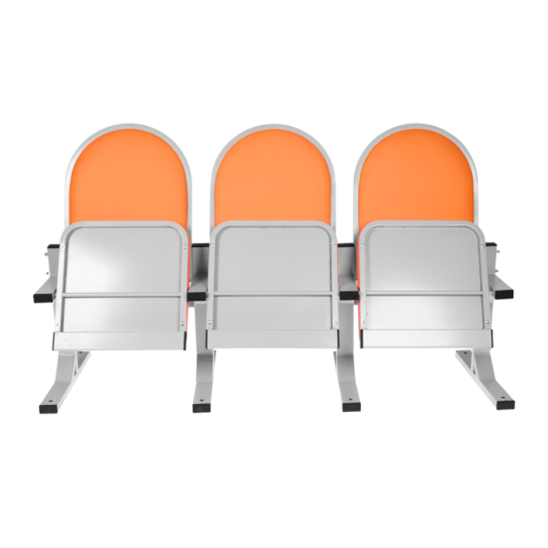 Каркас металлический 60х30х2 мм и 20х20 мм. Сиденье и спинка - фанерные заготовки, обтянутые обивочным материалом с поролоном внутри. Кресло крепится к стене анкерными болтами (в комплект не входят).
