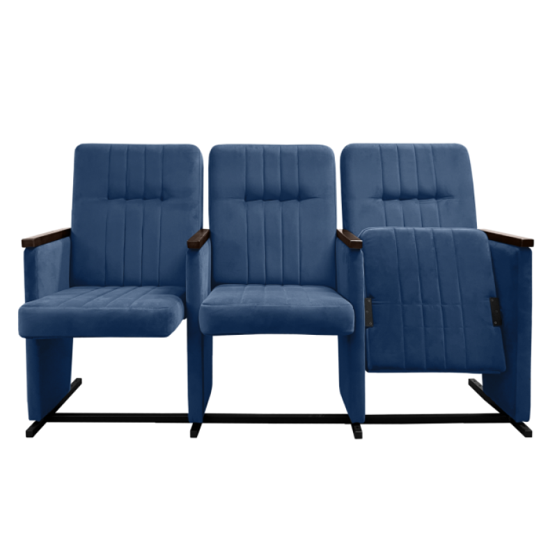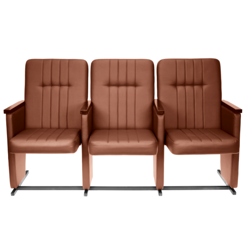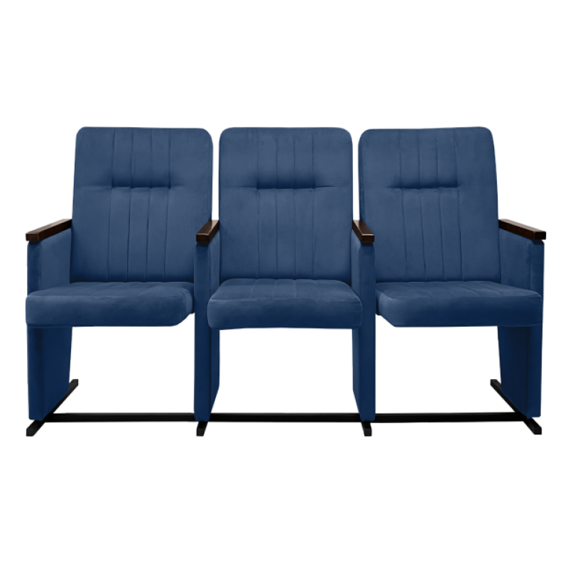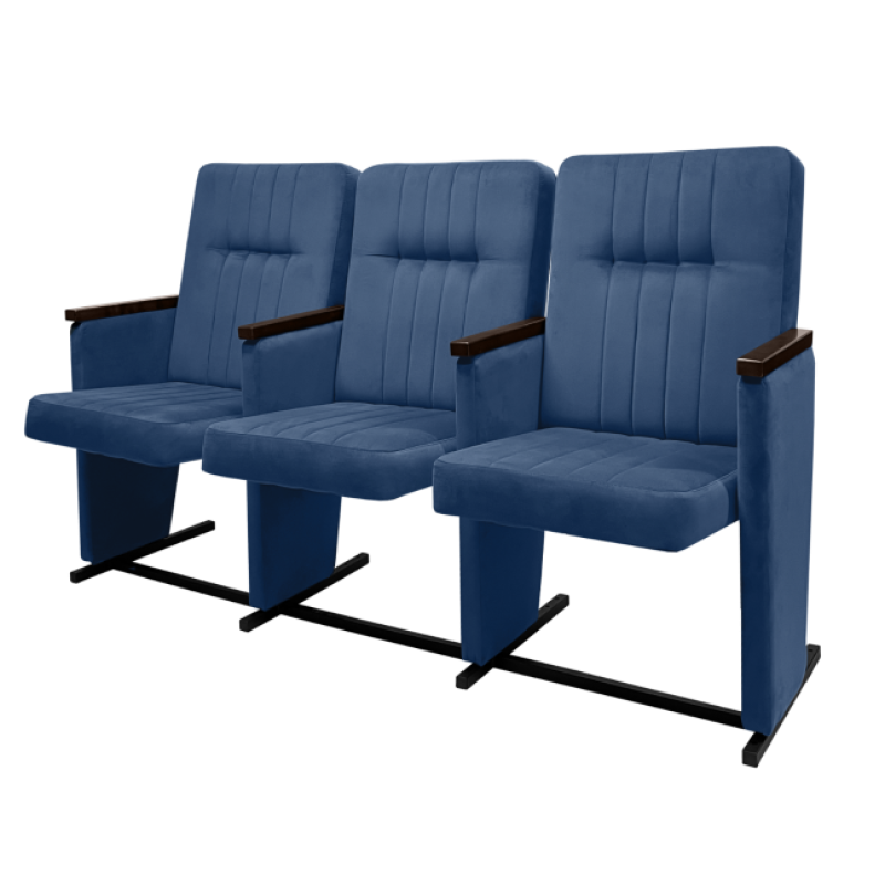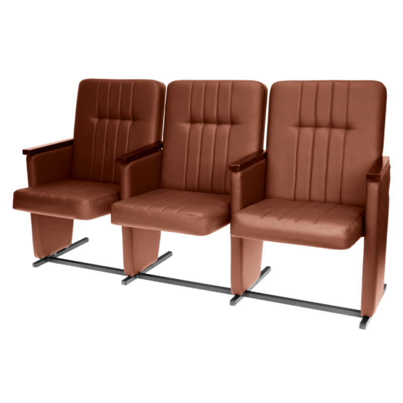 Секция отлично подойдёт для участников конференций, зрителей концертов и кинофильмов. На подлокотники установлены деревянные накладки. Металлическая опора кресла покрыта порошковой краской. Сиденья откидные.