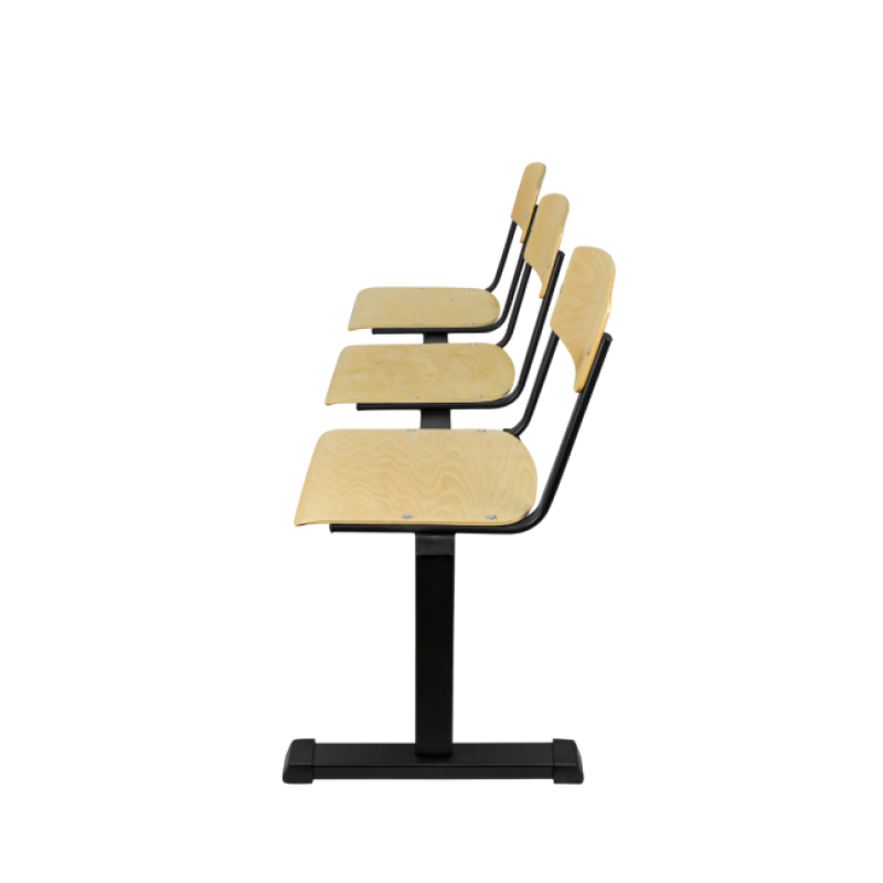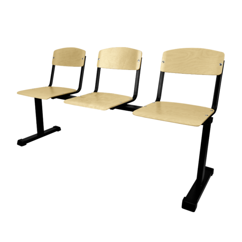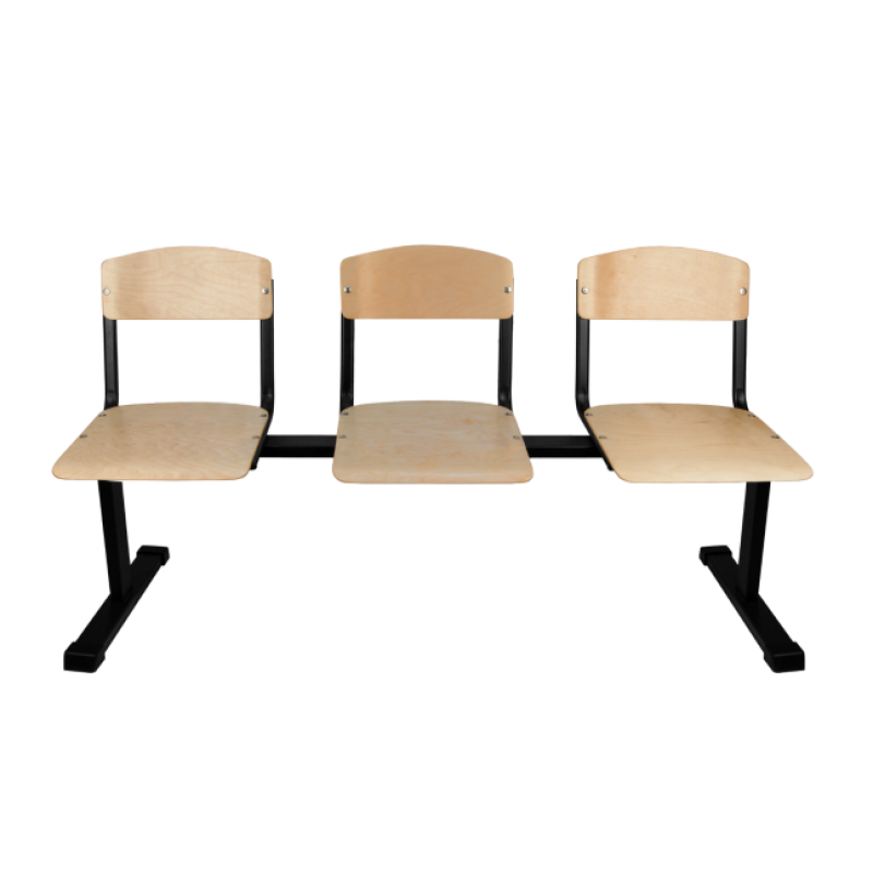 3-х местная секция стульев на металлокаркасе с неоткидными сиденьями из фанеры.