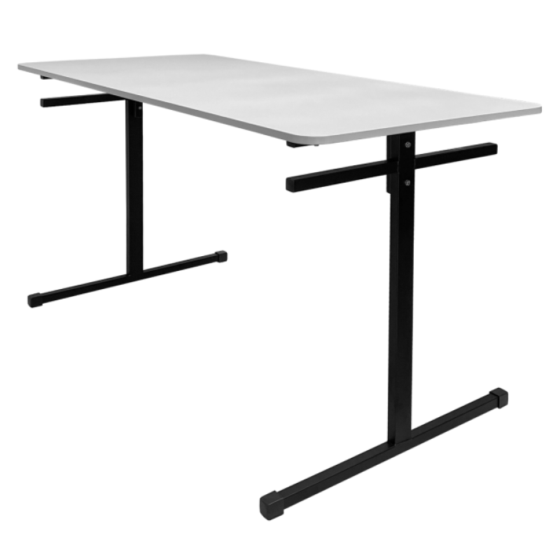 Удобный стол для школьных столовых и буфетов. Металлический каркас предусматривает специальные места, куда можно аккуратно вставить скамейку. Функциональный, надёжный и долговечный!