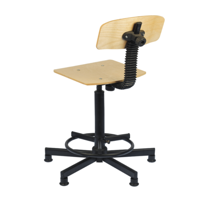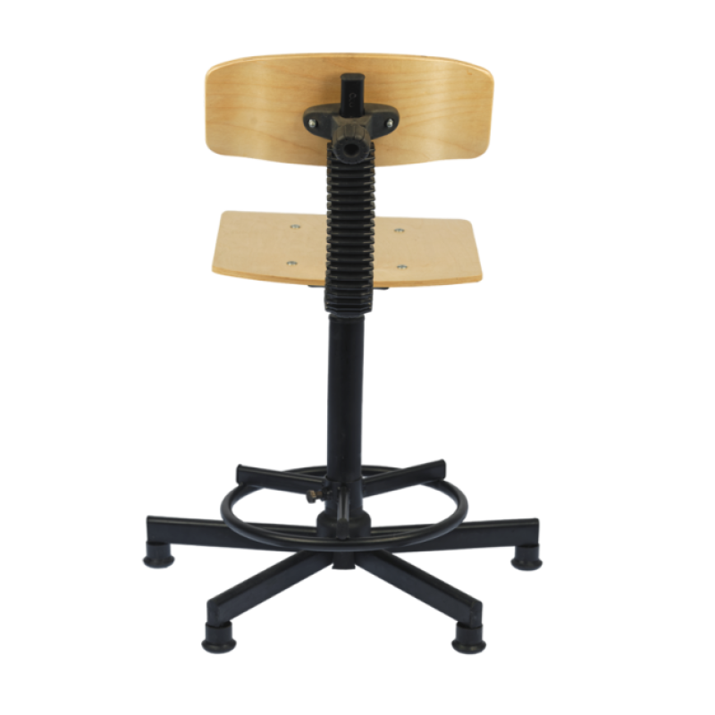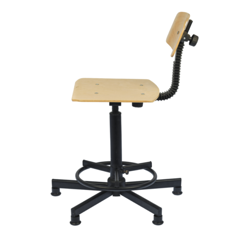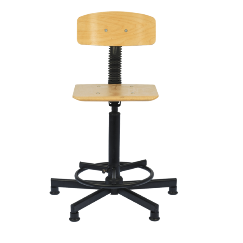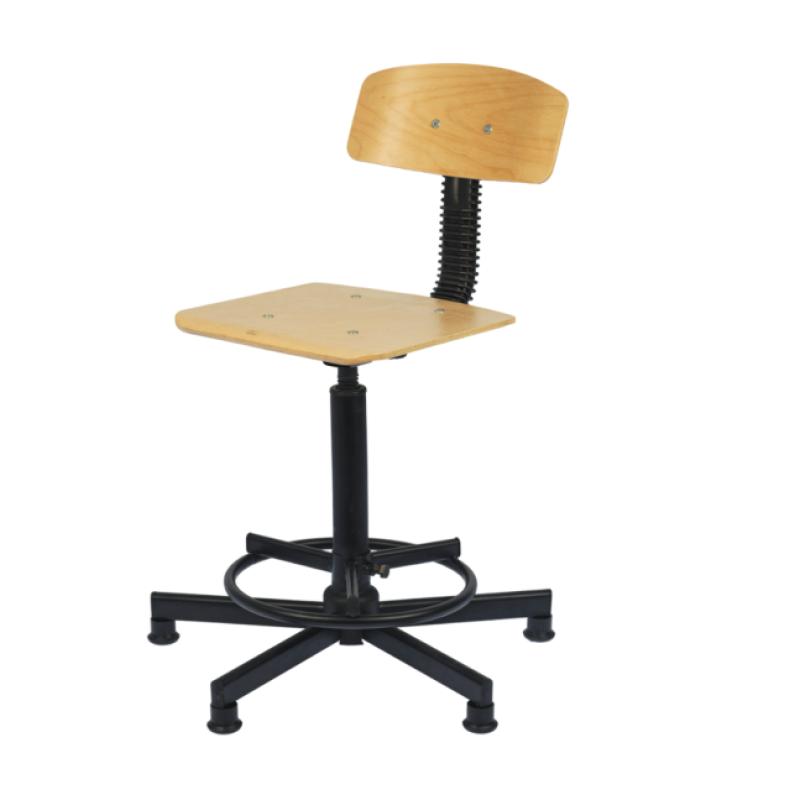 Стул изготовлен на металлическом каркасе с порошковым покрытием, сидение и спинка выполнены из фанеры, покрыты бесцветным лаком. Возможна тонировка фанеры.
