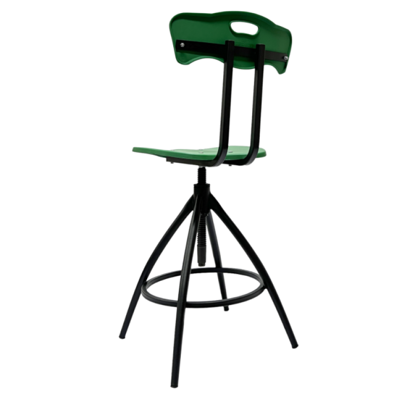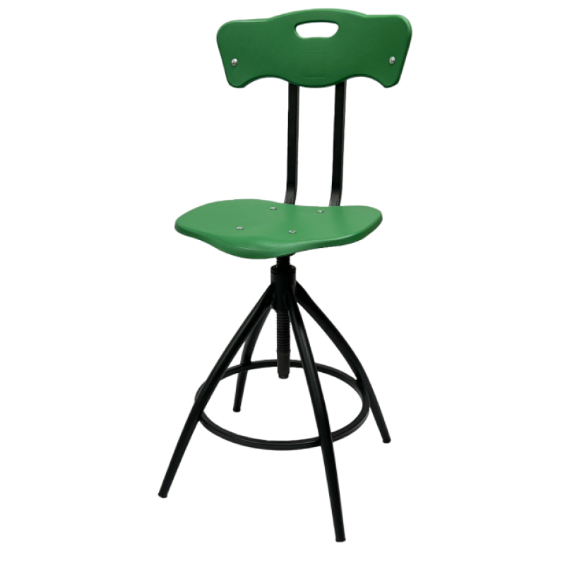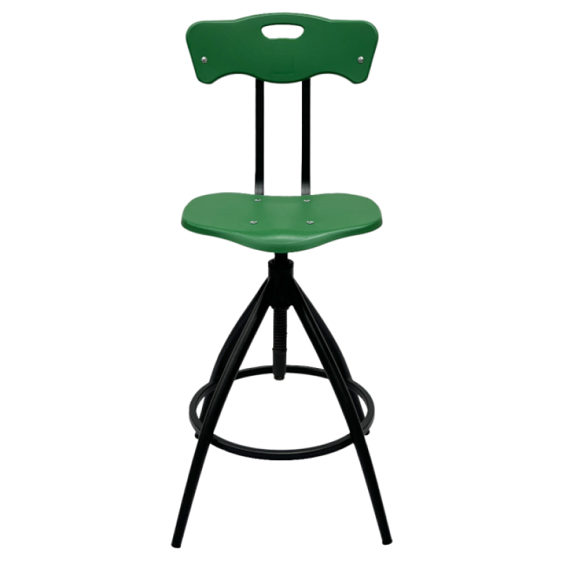 Высота РС89 регулируется с помощью винта собственного производства, надёжность которого проверена годами эксплуатации тысяч стульев. Дополнительная подножка в виде кольца создаёт комфортную опору для ног. Пластиковые сиденье и спинка практичны и долговечны в использовании.
